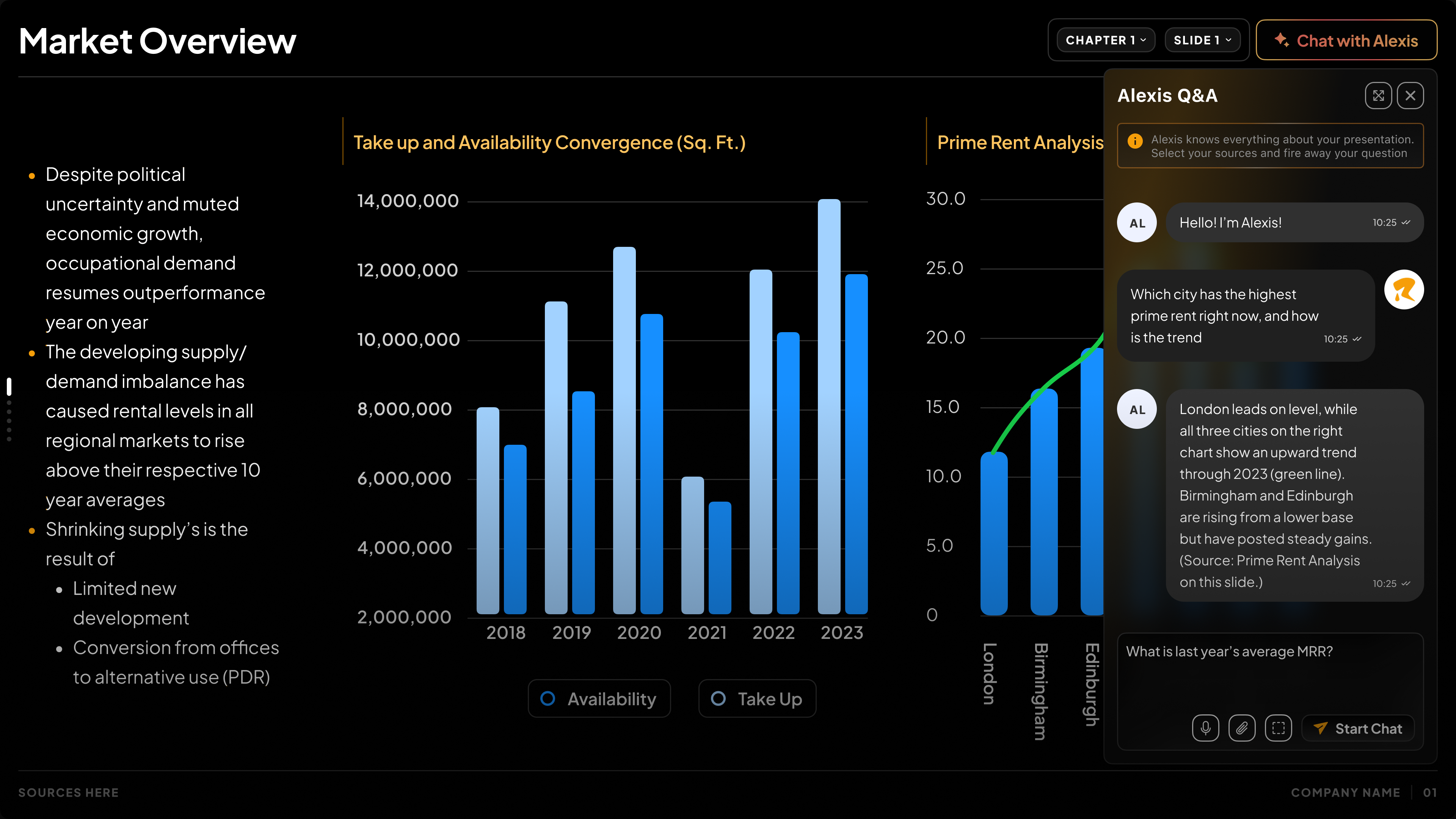 Ask anything from financial metrics to market benchmarks and get instant, accurate answers.